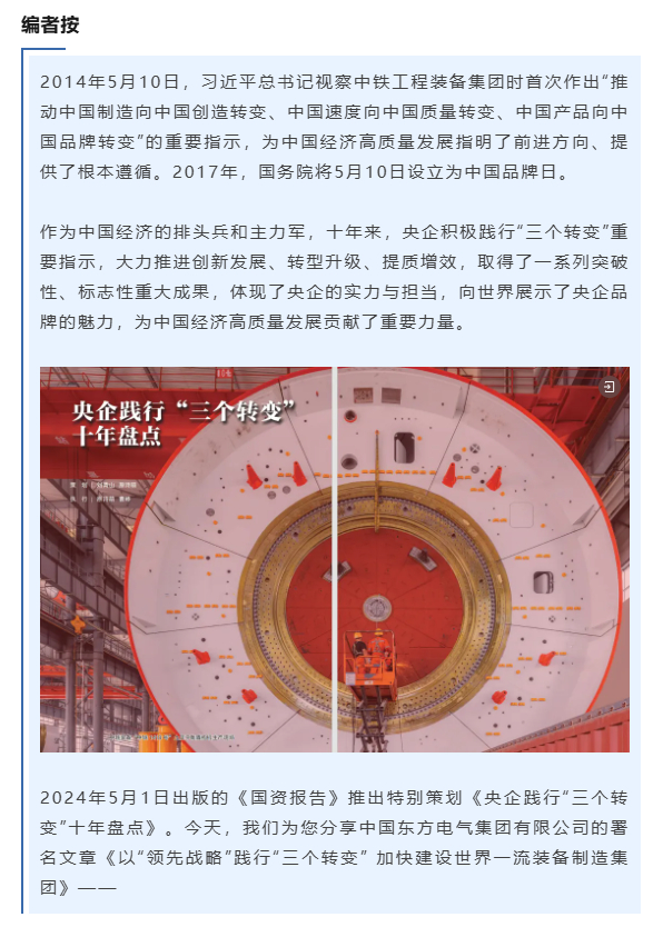 東方電氣集團(tuán)深入實施領(lǐng)先戰(zhàn)略,推動“質(zhì)量立企”向“質(zhì)量強企”“質(zhì)量領(lǐng)先”邁進(jìn)。