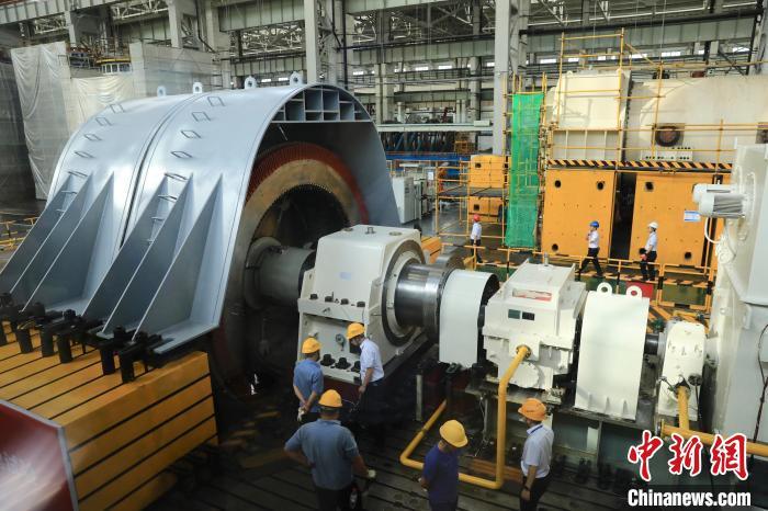 8月16日,四川德陽,300MW級變速抽蓄發(fā)電電動機(jī)1:1轉(zhuǎn)子飛逸試驗(yàn)。記者 王磊 攝
