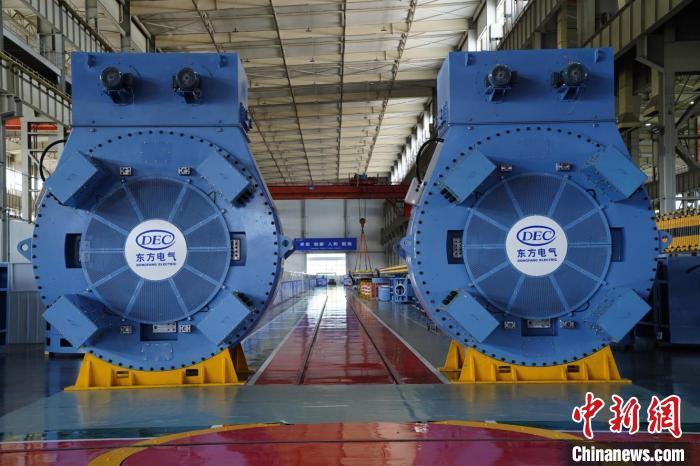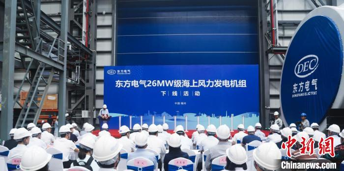 26兆瓦級海上風力發(fā)電機組下線現場。中國東方電氣集團有限公司供圖