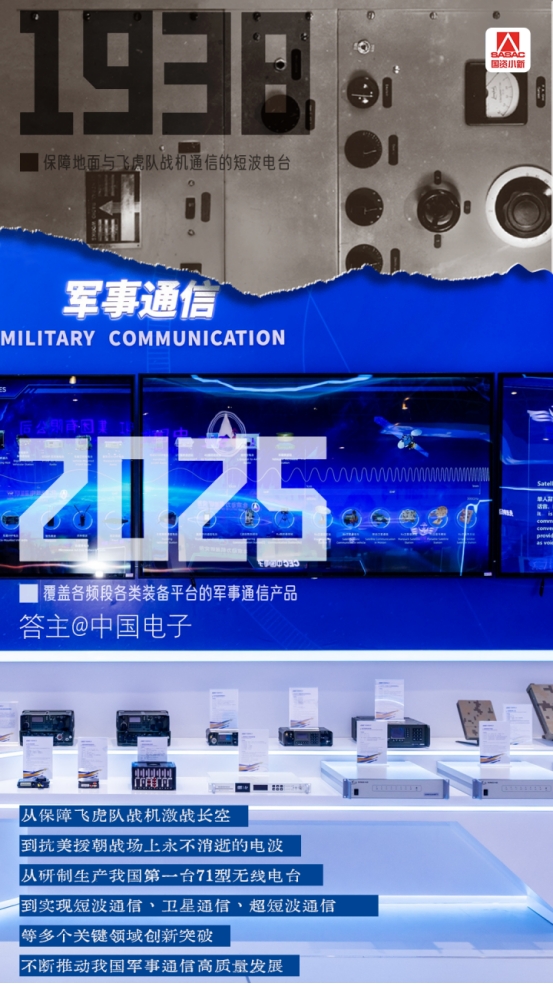 從保障飛虎隊?wèi)?zhàn)機(jī)激戰(zhàn)長空,到研制生產(chǎn)我國第一臺71型無線電臺,再到實現(xiàn)短波通信、衛(wèi)星通信、超短波通信等多個關(guān)鍵領(lǐng)域突破,如今的軍事通信產(chǎn)品譜系正傲然支撐著中國向軍事強(qiáng)國昂首邁進(jìn)。