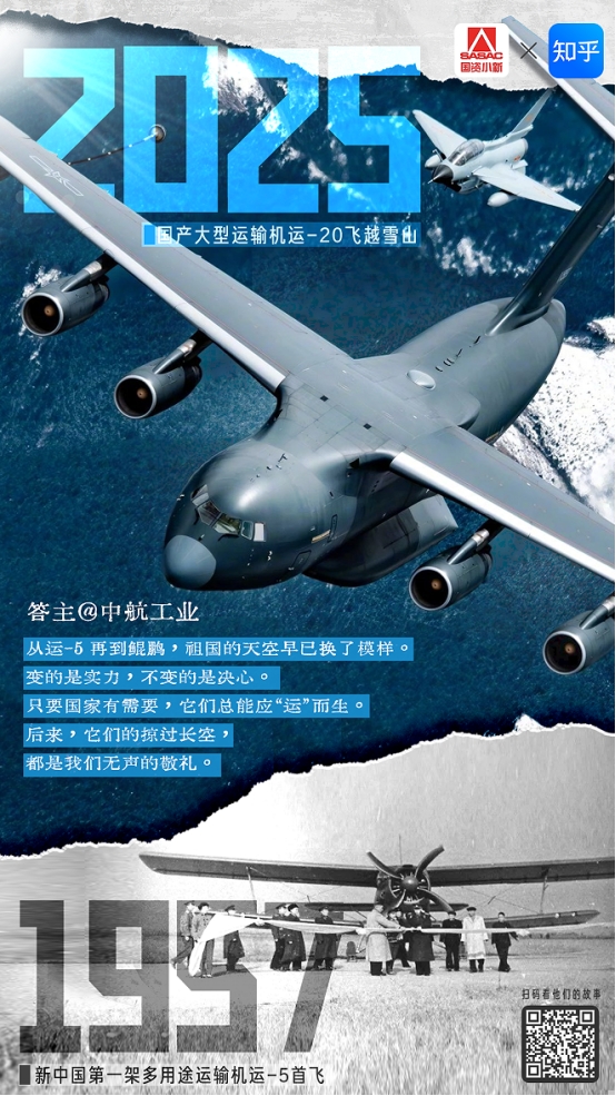 運-20“鯤鵬”穿越云層呼嘯而過,47米的機(jī)身已能馱載66噸跨越洲際。運-5是起點,運-20卻不是終點,無論何時何地,只要國家需要,它們總能應(yīng)“運”而生。每一次掠過長空,都是我們對您無聲的致敬。
