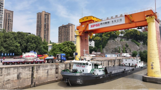 樂山大件碼頭作為四川大件運輸水陸轉(zhuǎn)換樞紐,地處三江匯流下游,航道水深穩(wěn)定、江面寬闊,具備千噸級通航條件。自1995年為服務(wù)三峽樞紐工程興建以來,已成為長江經(jīng)濟帶重要物流節(jié)點。利用碼頭配備的550噸橋式起重機,球閥與中壓模塊將在這里完成吊裝轉(zhuǎn)運的全過程。“采用橋式起重機,是因為碼頭固定軌道作業(yè)穩(wěn)定,能最大程度保障設(shè)備安全?!睎|方大件物流技術(shù)部技術(shù)經(jīng)理羅崎瑞介紹說,“單件設(shè)備上船后需要花1小時進(jìn)行加固作業(yè),確保航行中萬無一失。”