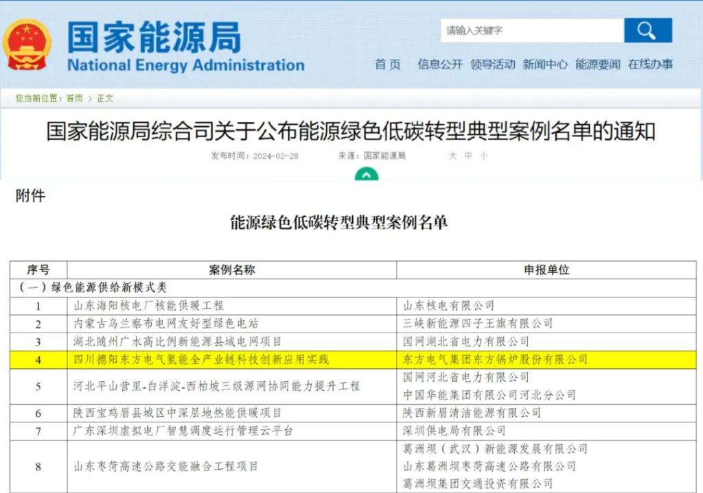 本網(wǎng)訊2月28日,國家能源局發(fā)布《關(guān)于公布能源綠色低碳轉(zhuǎn)型典型案例名單的通知》,由東方電氣集團(tuán)旗下東方鍋爐建設(shè)申報的四川德陽東方電氣氫能全產(chǎn)業(yè)鏈科技創(chuàng)新應(yīng)用實踐從150余個案例中脫穎而出,成功入選國家能源綠色低碳轉(zhuǎn)型典型案例。