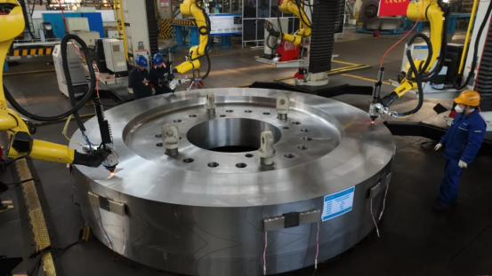 近年來,針對大型沖擊式轉(zhuǎn)輪研制,東方電機(jī)開發(fā)了智能化增材制造(3D打?。?、自動化數(shù)控加工、機(jī)器人焊接、機(jī)器人打磨、機(jī)器人三維掃描等技術(shù)。本次通過驗(yàn)證的轉(zhuǎn)輪直徑6.2米,整體重量達(dá)到90噸,95%以上制造過程實(shí)現(xiàn)了數(shù)字化、智能化。