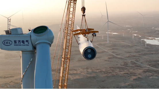 歷經(jīng)7個月連續(xù)奮戰(zhàn),近日,東方電氣布爾津100萬千瓦風電項目如期完成全部風機吊裝,標志著項目全面進入并網(wǎng)沖刺階段。