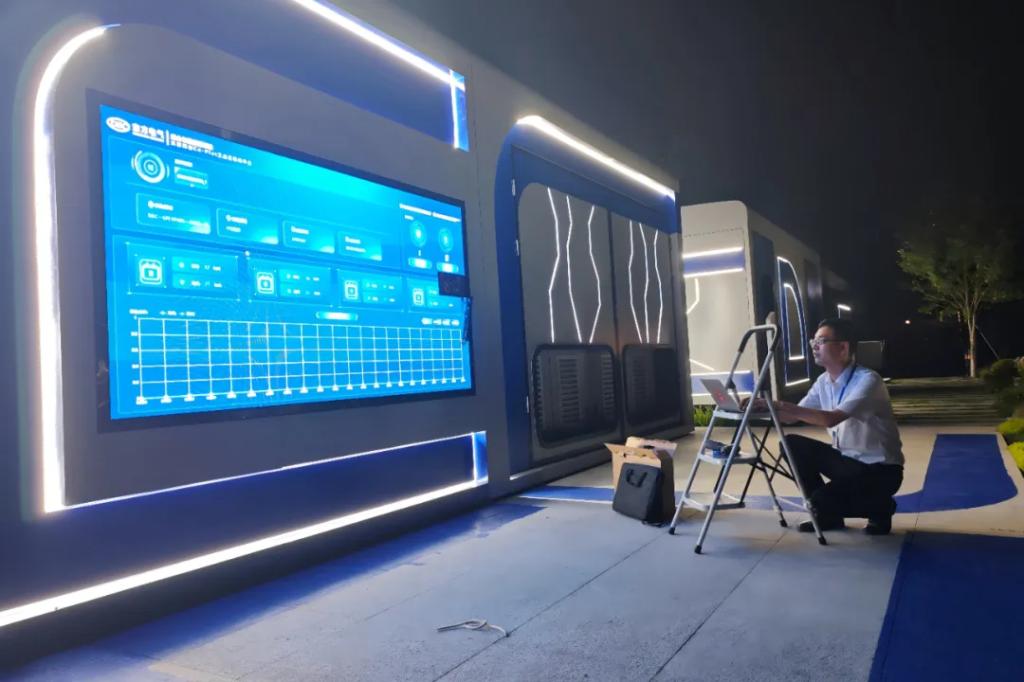 團(tuán)隊(duì)成員調(diào)試集團(tuán)總部園區(qū)綠色低碳智慧系統(tǒng)