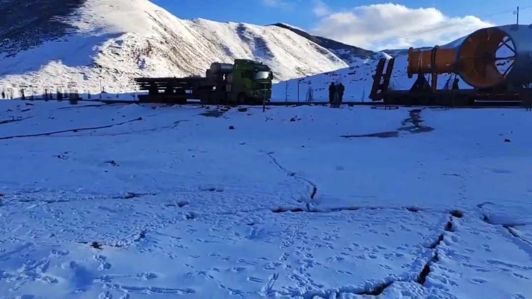 隨著海拔不斷升高,空氣越發(fā)稀薄,運(yùn)輸人員開始出現(xiàn)不同程度的高原反應(yīng)。雪白的東達(dá)山在陽光的照射下,晃得人睜不開眼。此時(shí)的雪域高原雄渾壯美,然而大家并沒有心情駐足欣賞,心中只有一個(gè)想法:盡快安全到達(dá)目的地。