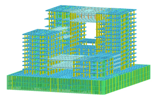 在犧牲建筑標志性設(shè)計和面臨超限條款之間,項目團隊和設(shè)計院找到了一條平衡之路:經(jīng)過反復(fù)論證、優(yōu)化模型、完善應(yīng)力分析,通過采用提高建筑底部加強部位框架柱抗震等級、提高混凝土強度、合理設(shè)置后澆帶等超限設(shè)計的針對性措施,保證結(jié)構(gòu)抗震安全。