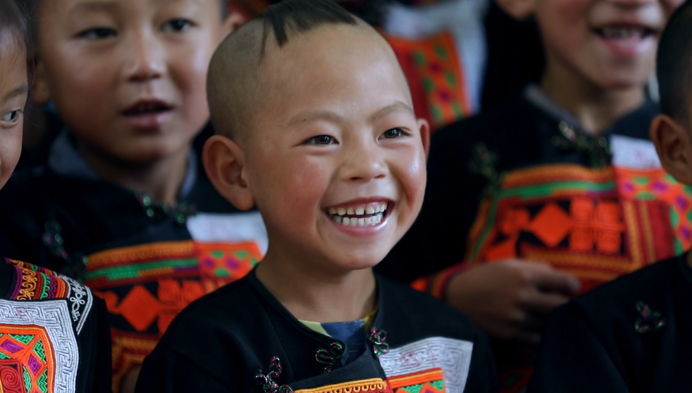 彝族小朋友在東方電氣集團(tuán)捐建的幼教點學(xué)習(xí)普通話