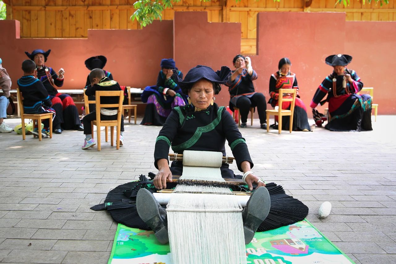 昭覺縣特布洛村村民正在村民活動廣場手工染織“查爾瓦”(“查爾瓦”是彝族地區(qū)不論男女都喜歡披的一種羊毛織披氈)