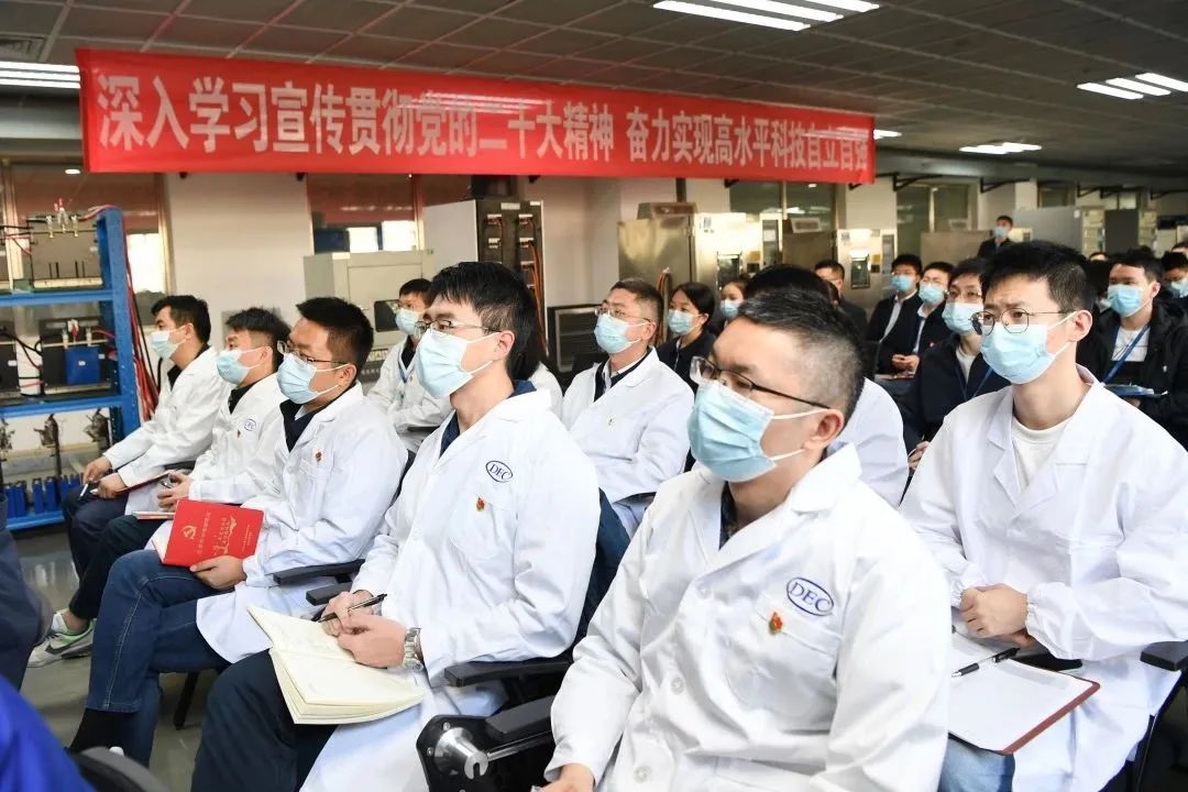 為引導(dǎo)全集團(tuán)廣大干部職工切實(shí)把思想和行動(dòng)統(tǒng)一到黨的二十大精神上來(lái),根據(jù)東方電氣集團(tuán)黨組統(tǒng)一部署,11月22日,集團(tuán)公司“高舉偉大旗幟 凝聚奮進(jìn)力量”黨的二十大精神宣講隊(duì)首場(chǎng)宣講報(bào)告會(huì)在東方研究院新能源電池測(cè)試實(shí)驗(yàn)室舉行,用“行走的課堂”講述“我們身邊”拼搏奮進(jìn)爭(zhēng)先的鮮活故事,激勵(lì)科研工作者以實(shí)干搶抓創(chuàng)新先機(jī),為加快實(shí)現(xiàn)高水平科技自立自強(qiáng)貢獻(xiàn)“東方”力量。