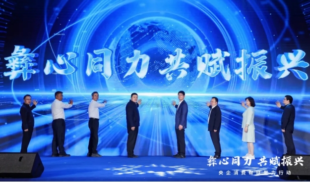 與會領(lǐng)導共同為央企消費幫扶聚力行動之“彝心同力 共賦振興”購物節(jié)按下啟動鍵。