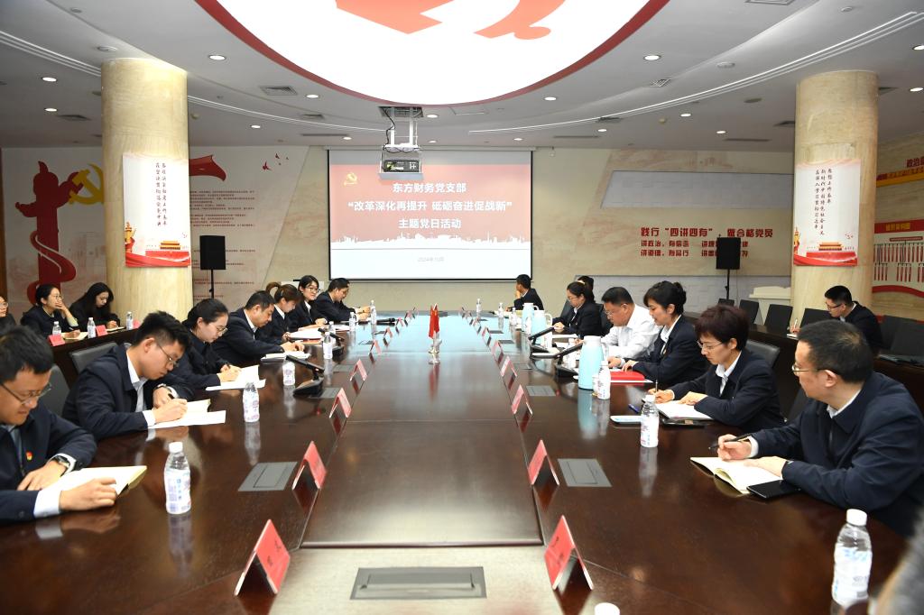 10月16日,集團(tuán)公司董事、黨組副書記宋致遠(yuǎn)參加聯(lián)系黨支部東方財(cái)務(wù)黨支部主題黨日活動(dòng),并宣講全會(huì)精神。宋致遠(yuǎn)強(qiáng)調(diào),要深刻認(rèn)識全會(huì)的重要意義,切實(shí)增強(qiáng)學(xué)習(xí)貫徹的政治責(zé)任感和歷史使命感;要深刻把握全會(huì)精神實(shí)質(zhì),以釘釘子精神扎實(shí)推動(dòng)企業(yè)各項(xiàng)改革任務(wù)落地見效;要以學(xué)習(xí)宣傳貫徹全會(huì)精神為契機(jī),推進(jìn)東方財(cái)務(wù)高質(zhì)量發(fā)展。