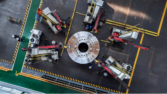 在轉(zhuǎn)輪制造完成之后,轉(zhuǎn)輪直徑達(dá)到6.2米,重量達(dá)到90噸,其中通過機(jī)器人增材技術(shù)的增材制造量超6噸。增材制造完成后,轉(zhuǎn)輪將“長”出一片片花瓣形的水斗,這項(xiàng)工藝也被稱為“鐵臂繡花”。這項(xiàng)技術(shù)非常適合于復(fù)雜型面結(jié)構(gòu)部件的定制化制造,而東方電氣集團(tuán)也是國內(nèi)唯一一家將機(jī)器人增材制造技術(shù)應(yīng)用于大型沖擊式轉(zhuǎn)輪制造的企業(yè)。