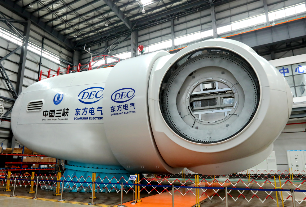 在水電領(lǐng)域,2021年6月28日,全球單機(jī)容量最大、在建規(guī)模最大的白鶴灘水電站首批機(jī)組順利投產(chǎn)發(fā)電。東方電氣集團(tuán)研制的左岸8臺(tái)百萬(wàn)千瓦機(jī)組具有100%自主知識(shí)產(chǎn)權(quán),實(shí)現(xiàn)100%國(guó)產(chǎn)化,所有產(chǎn)出重大部件和投運(yùn)機(jī)組精品率100%,實(shí)現(xiàn)臺(tái)臺(tái)精品件件一流目標(biāo),開創(chuàng)巨型水電機(jī)組溫差控制和擺度水平新紀(jì)元。電站建成后,年平均發(fā)電量624.43億度,超過(guò)2019年北京市全社會(huì)用電總量(1166.4億千瓦時(shí))的二分之一,每年可節(jié)約標(biāo)準(zhǔn)煤約1968萬(wàn)噸,減少排放二氧化碳5160萬(wàn)噸,節(jié)能減排效益顯著。