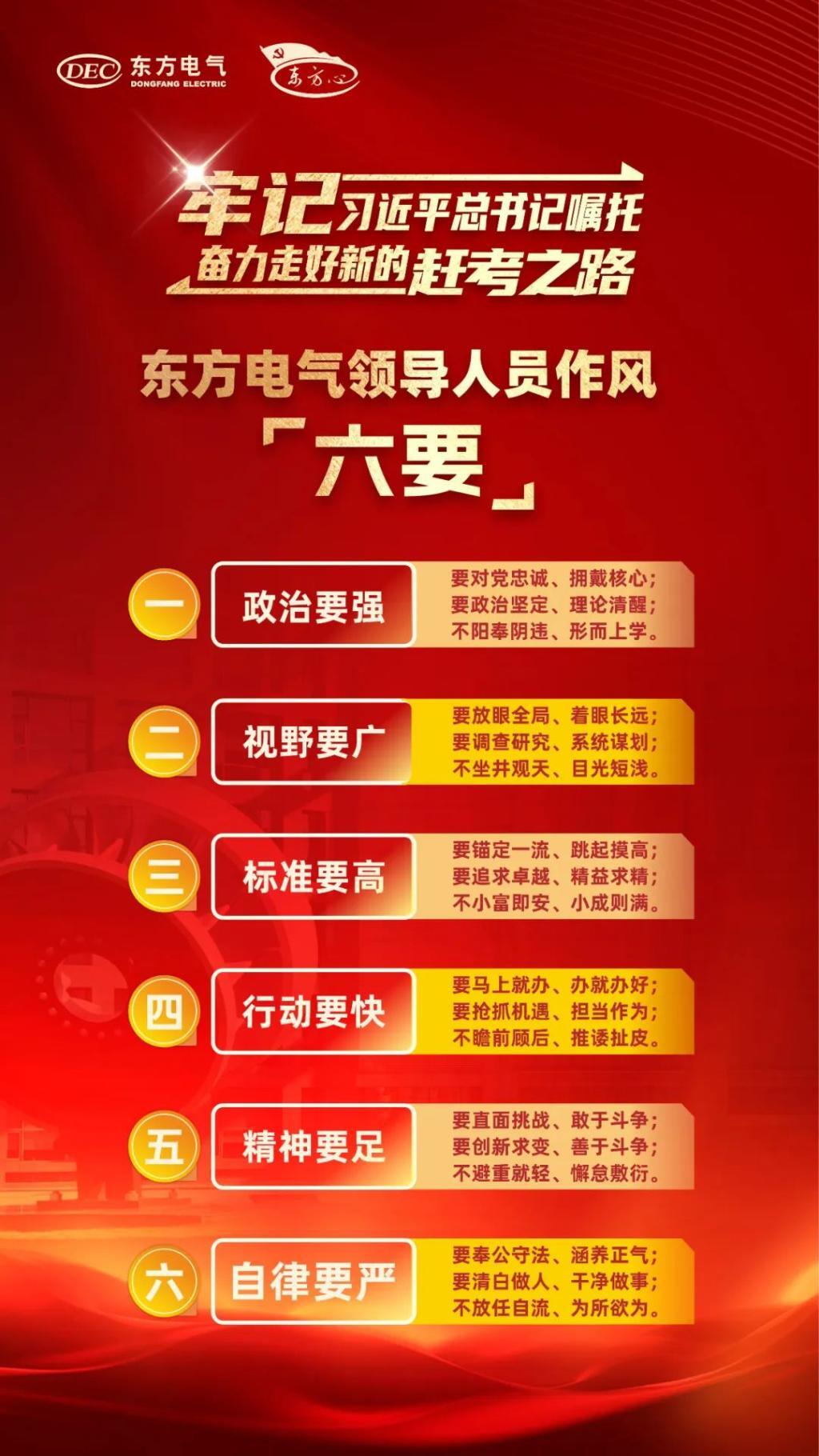 俞培根要求,實現(xiàn)“十四五”發(fā)展目標、加快創(chuàng)建世界一流企業(yè)需要全體東方電氣人接續(xù)奮斗,各級領(lǐng)導班子和領(lǐng)導人員是走在前、作表率的“關(guān)鍵少數(shù)”,要以東方電氣領(lǐng)導人員作風“六要”嚴格要求自己,煥發(fā)出更加昂揚向上的精神狀態(tài)、展現(xiàn)出更加銳意進取的奮斗姿態(tài),帶領(lǐng)廣大職工以過硬作風拼搏奮進爭先,為加快建設(shè)具有核心競爭力的世界一流裝備制造集團貢獻智慧力量。