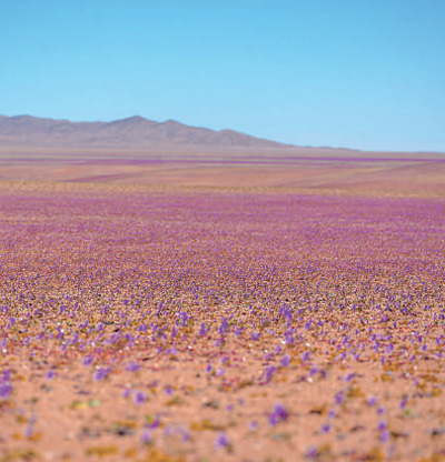 在國(guó)家電網(wǎng)智利阿塔卡馬沙漠輸電線路沿線的珍稀植物保護(hù)地區(qū),地下蘊(yùn)藏著珍稀的休眠開(kāi)花植物,在特定氣候下會(huì)綻放成片的花海,被譽(yù)為“花之沙漠”自然奇觀。國(guó)家電網(wǎng)供圖