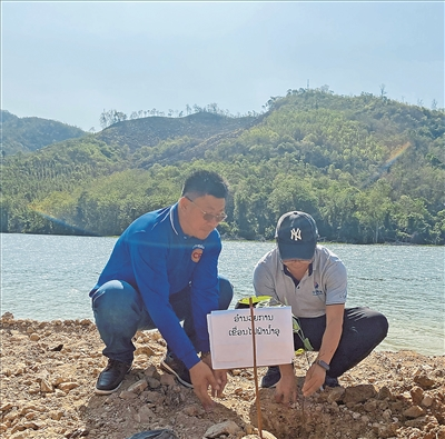 中老工作人員在老撾南歐江一級(jí)水電站培育樹(shù)苗。賽亞棒攝