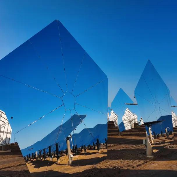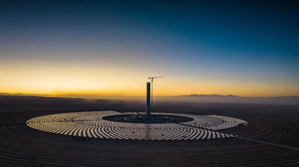 茫茫戈壁,百米高塔巍然聳立,萬余面定日鏡“逐日”而動,猶如一朵巨大的“銀色向日葵”。這朵“向日葵”由行業(yè)首創(chuàng)的14500面正五邊形定日鏡構(gòu)成,正在服務(wù)于國家首批太陽能熱發(fā)電示范項目、新疆首個光熱發(fā)電站——新疆哈密50兆瓦熔鹽塔式光熱發(fā)電項目。該項目每年貢獻近2億度清潔電能,為新疆綠色低碳發(fā)展帶來更多可能。