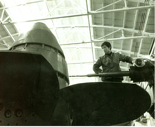 除了這臺(tái)固定的舊鉆床外,汪煥木和他的徒弟還有一臺(tái)同樣大的可移式萬(wàn)能鉆床,這在全分廠沒有第二例。開萬(wàn)能鉆,就要“轉(zhuǎn)戰(zhàn)四方”,從廠房這頭到廠房那頭,從大電機(jī)廠房到重跨廠房,哪里有需要,汪煥木就要干到哪里.到處“轉(zhuǎn)戰(zhàn)”,來來去去,費(fèi)時(shí)費(fèi)力。而這時(shí)往往又需要爬到七八米高的工件上面去干,危險(xiǎn)性大,不好站位,別人不愿干,汪煥木一聽,拿著工具就去干。