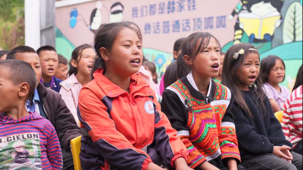 在正式歌曲教學(xué)前,孩子們用真摯的眼神期待老師的授課。課堂中,音樂老師為同學(xué)們逐字逐句地朗讀歌詞,深情演唱給孩子們聽,同時耐心地向孩子們講解其含義。在助教團(tuán)的悉心引導(dǎo)下,孩子們逐漸記住了歌詞、掌握了旋律,喜悅之情溢于言表。音樂課堂通過《我和我的祖國》向孩子們傳遞了積極向上的力量,豐富了孩子們的精神世界。