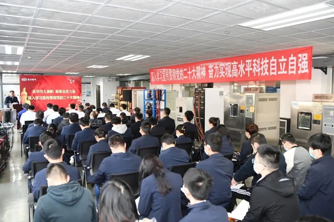 為引導(dǎo)全集團(tuán)廣大干部職工切實把思想和行動統(tǒng)一到黨的二十大精神上來,根據(jù)東方電氣集團(tuán)黨組統(tǒng)一部署,11月22日,集團(tuán)公司“高舉偉大旗幟 凝聚奮進(jìn)力量”黨的二十大精神宣講隊首場宣講報告會在東方研究院新能源電池測試實驗室舉行,用“行走的課堂”講述“我們身邊”拼搏奮進(jìn)爭先的鮮活故事,激勵科研工作者以實干搶抓創(chuàng)新先機,為加快實現(xiàn)高水平科技自立自強貢獻(xiàn)“東方”力量。