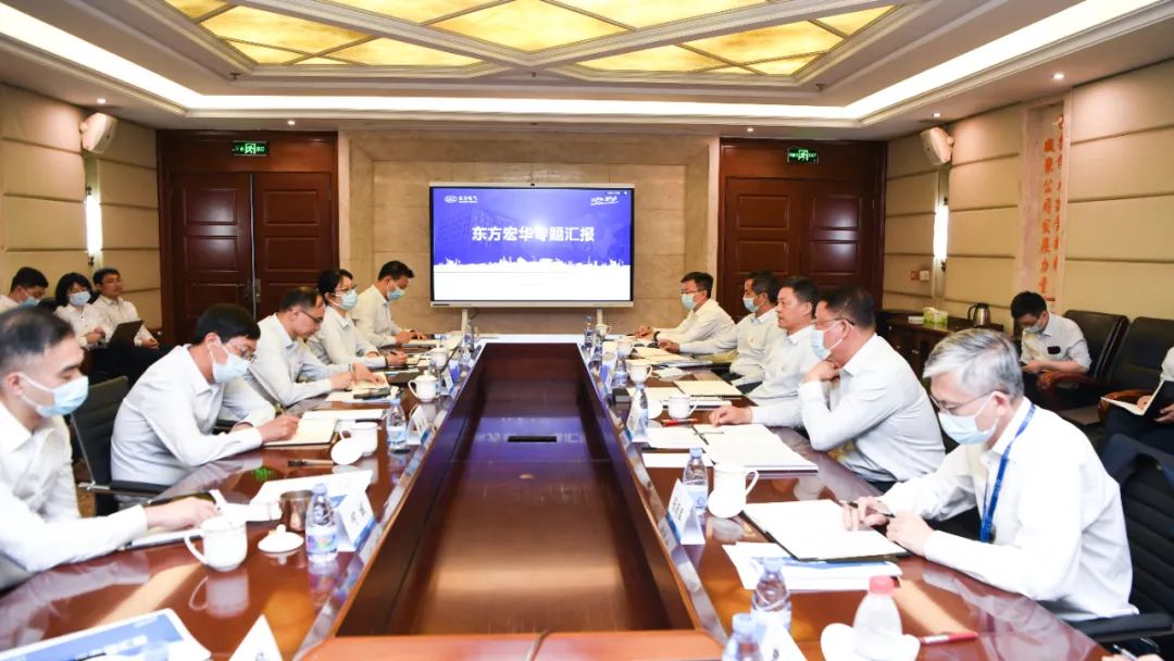 俞培根首先與東方宏華領(lǐng)導班子座談,調(diào)研東方宏華黨的建設(shè)、生產(chǎn)經(jīng)營及主題教育開展情況,并圍繞深化改革、科技創(chuàng)新、能源裝備高質(zhì)量發(fā)展等交流研討。