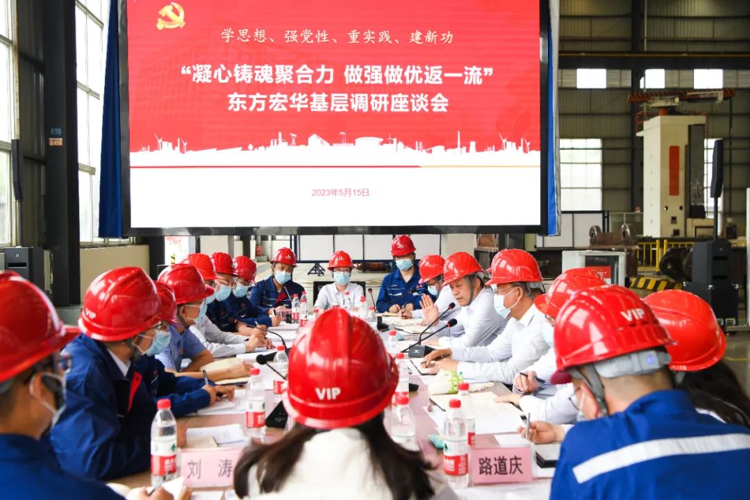 5月15日,在出席東方電氣集團2023年“學思想、爭先鋒、謀發(fā)展、建新功”群眾性主題宣傳教育活動啟動會后,集團公司黨組書記、董事長俞培根深入東方宏華,圍繞“凝心鑄魂聚合力,做強做優(yōu)返一流”主題,開展主題教育專題調(diào)研。集團公司領(lǐng)導宋致遠、孫國君、張彥軍、李忠軍一同調(diào)研。