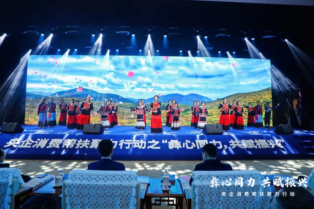與會領(lǐng)導共同為央企消費幫扶聚力行動之“彝心同力 共賦振興”購物節(jié)按下啟動鍵。