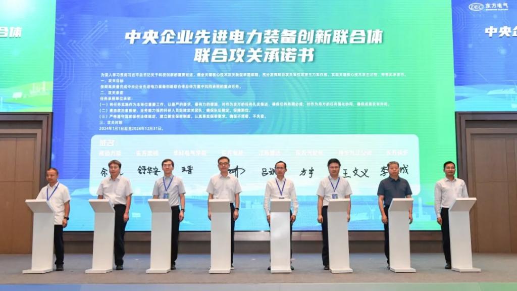 本網(wǎng)訊 9月13日,由國務(wù)院國資委指導(dǎo),東方電氣集團(tuán)牽頭的中央企業(yè)先進(jìn)電力裝備創(chuàng)新聯(lián)合體正式成立。國務(wù)院國資委科技創(chuàng)新局,四川省科技廳、四川省國資委、四川省能源局等單位領(lǐng)導(dǎo)及中國工程院張宗亮院士、楊勇平院士出席會議,東方電氣集團(tuán)總經(jīng)理、黨組副書記張彥軍出席會議并致辭,總經(jīng)理助理、股份公司副總裁胡修奎主持會議。