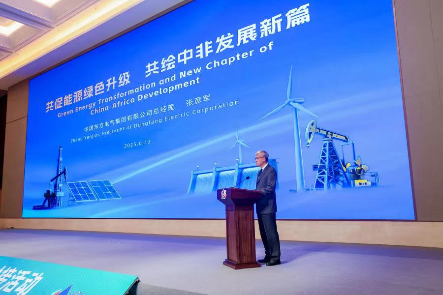 6月13日,以“綠色低碳 電‘靚’非洲”為主題的第四屆中國—非洲經(jīng)貿(mào)博覽會·中非電力與新能源發(fā)展合作交流對接活動在湖南岳陽舉行。來自坦桑尼亞、贊比亞、津巴布韋等14個非洲國家的100多名外賓、80多家中非企業(yè)及金融機構(gòu)參加活動。東方電氣集團總經(jīng)理、黨組副書記張彥軍應(yīng)邀出席活動并作《共促能源綠色升級,共繪中非發(fā)展新篇》專題分享。