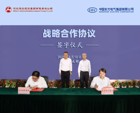 6月10日,中國東方電氣集團(tuán)有限公司與河北建設(shè)投資集團(tuán)有限責(zé)任公司在成都簽署戰(zhàn)略合作協(xié)議。東方電氣集團(tuán)總經(jīng)理、黨組副書記張彥軍和河北建投集團(tuán)總經(jīng)理、黨委副書記曹欣出席簽約儀式,東方電氣集團(tuán)黨組成員、副總經(jīng)理李建華,河北建投集團(tuán)副總經(jīng)理秦剛分別代表雙方簽署協(xié)議。