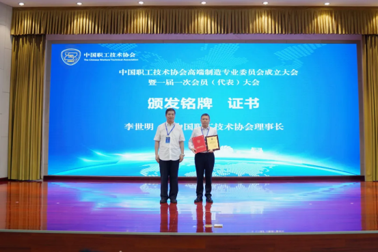 會(huì)上,李世明宣布中國(guó)職工技術(shù)協(xié)會(huì)高端制造專業(yè)委員會(huì)(以下簡(jiǎn)稱“高端制造專委會(huì)”)正式成立,并向高端制造專委會(huì)頒發(fā)匾牌,向高端制造專委會(huì)會(huì)長(zhǎng)、集團(tuán)公司總經(jīng)理助理曾小平頒發(fā)銘牌和證書。劉偉宣讀關(guān)于高端制造專委會(huì)成立的批復(fù)。